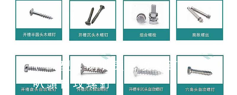 每一個自攻螺釘的構成都有四大要素:頭部形狀、扳擰方式、螺紋種類、末端型式。頭部形狀—頭部形狀各式各樣。有圓頭(半圓頭)、 扁圓頭、圓頭凸緣(帶墊)、扁圓頭凸緣(帶墊)、盤頭、盤頭凸緣(帶墊)、沉頭、半沉頭、 1.機螺釘 2.自攻螺釘 3.鉆尾螺釘 4.墻板釘 5.纖維板釘 6.木螺釘7.六角木螺釘 8.不脫出螺釘 9.組合螺釘 10.微型螺釘 11.家具螺釘 12.電子螺釘頭型:1.六角頭(hexagon head) 2.六角頭法蘭面(hexagon head with flange) 3.